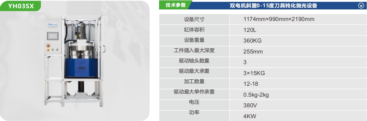 YH03SX双电机斜置0-15度刀具钝化抛光设备